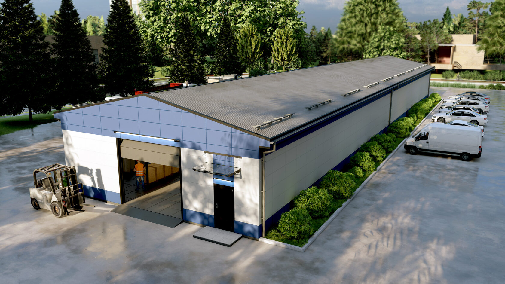 Строительство зданий осуществляется по каркасной технологии, металлический каркас здания производим на собственном производстве. Утепление за счет сэндвич панелей или минераловатного утеплителя, а для фасада применяются абсолютно любые материалы.