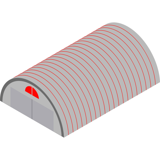 Ангар арочного типа представляет собой быстровозводимую конструкцию без выделения крыши как самостоятельного элемента. Основа выполняется из металла, покрывается тентом.
